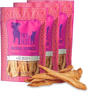 PACK'N PRIDE Dog Treats, 3 Pack*100g Freeze-Dried Duck Strips, Low-fat Dog Chews..